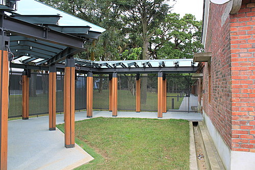 在材料運用上,為了保持整體的素樸以及「裡外如一」的質感,本案的外牆以清水混凝土為主,並大量採用5cm寬之杉木清水模板,而非一般常見的芬蘭板,因為兩者的質感截然不同,前者的「拙氣」與後者的「工整」相較,有著類似鄉村與都會的氛圍差別,初期的試築結果證明了這種感覺。本案的清水外牆不作化妝,唯一處理的只有蜂窩較劇之處的水泥填補,雖然營造廠施作清水混凝土的經驗確實不足,我們終究決定即便色差嚴重之處也不作修飾。屋頂材料的選擇過程則較為「艱辛」,為了延伸牆面的「拙氣」,在施工圖繪製階段,我們特別設計了一種以金屬夾具固定的鑽泥板屋頂系統,這種系統的面板更換容易,而且屋簷會逐漸「模糊化」,亦即鑽泥板邊緣的木絲黏著劑(水泥)會隨著時間流逝而逐漸剝落,最後會出現類似茅草屋簷的效果,但是完全不影響屋頂防水及排水的功能,可惜後來被迫改成現有的銅板折襟蒙皮系統,算是本案較大的遺憾之一。